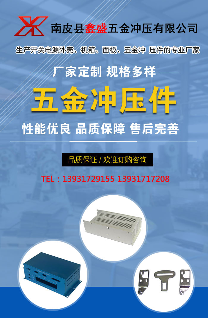 南皮縣鑫盛五金沖壓有限公司成立于1987年,是生產(chǎn)開關(guān)電源外殼、機(jī)箱、面板、五金沖 壓件的專業(yè)廠家,位于“五金之鄉(xiāng)”河北省南皮縣車官屯工業(yè)園區(qū)。
